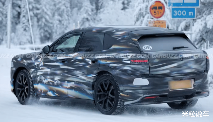 从侧面我们能够发现轮毂尺寸依然达到了20英寸,并且保留了机械门把手设计,侧面尺寸也明显进行了缩小!由于是一款纯电车型,整车的重心比较低,所以说离地间隙相对一般,但是我们推测大概率是搭载了空气悬架功能的。