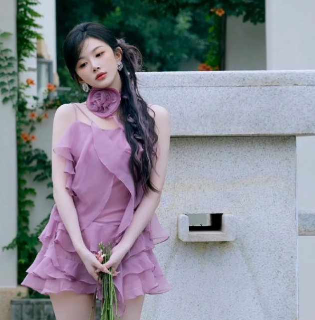 孔雪儿的紫色裙装,这着装还是很可以的,超可以的!
